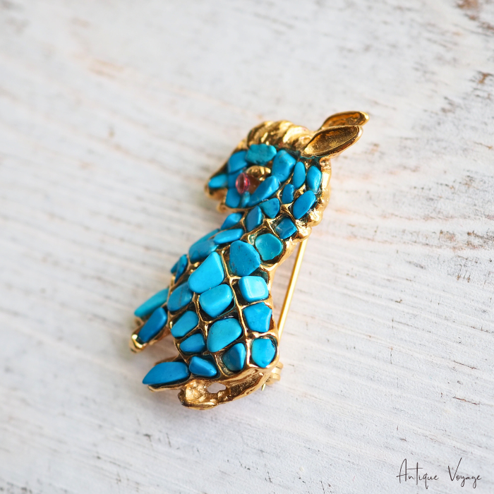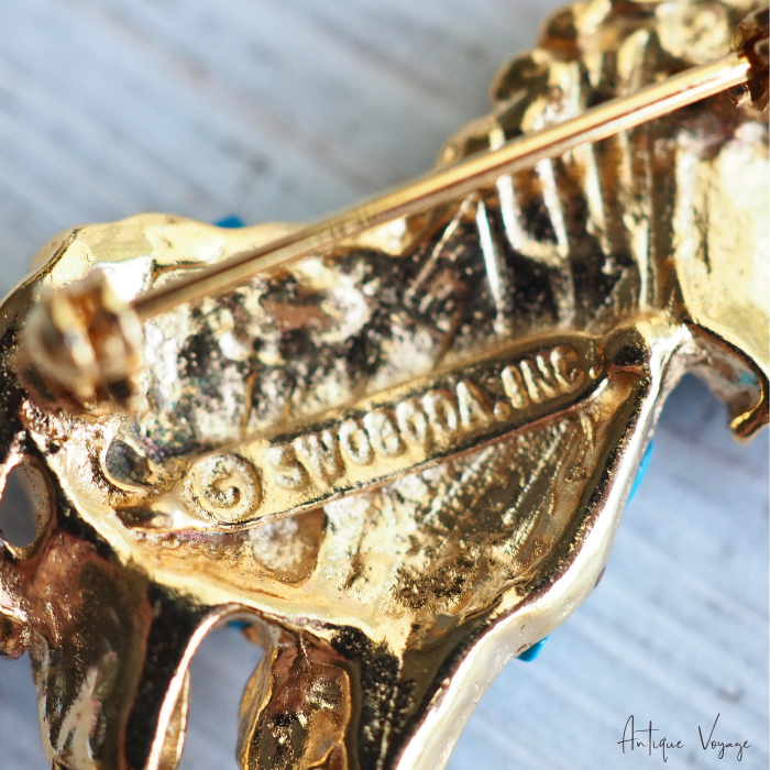 SWOBODA(スワボダ)の、ブルーハウライトとガーネット2種の天然石でデザインされた、ドンキー/ロバのヴィンテージ・ブローチ【デッドストック】です。