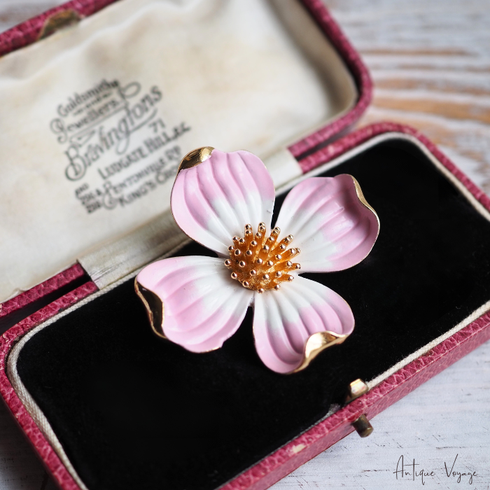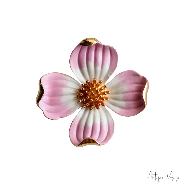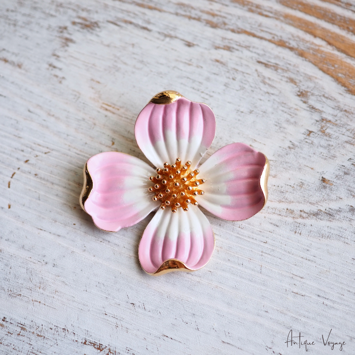 TRIFARI(トリファリ)の、桜ピンク色が美しいハナミズキのヴィンテージ・ブローチです。