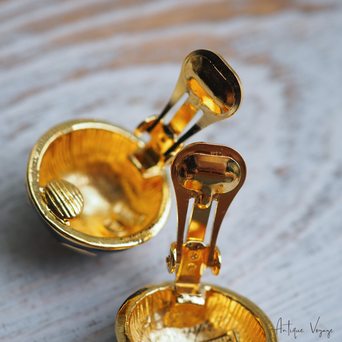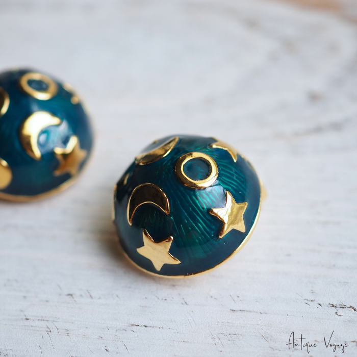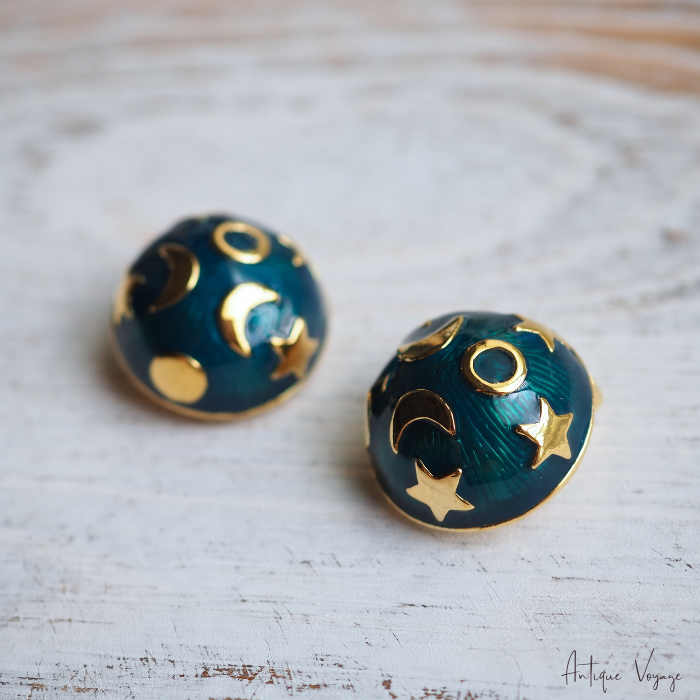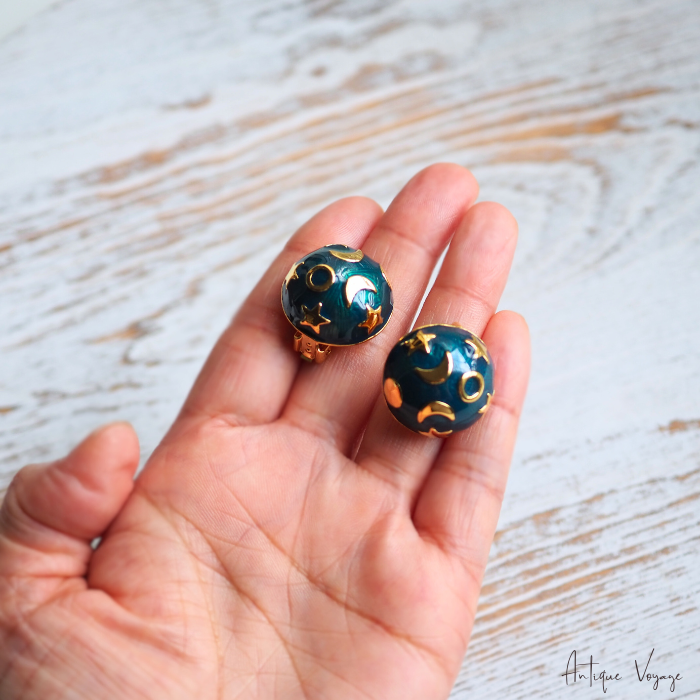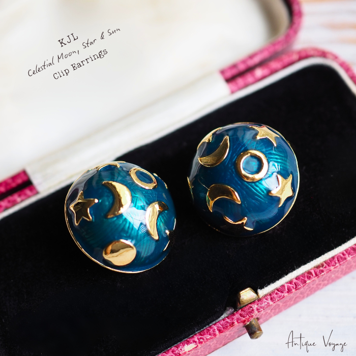 KJL/KENNETH JAY LANE(ケネス・ジェイ・レーン)の、月と星と太陽 天体のヴィンテージ・クリップ式イヤリング【藍色】です。