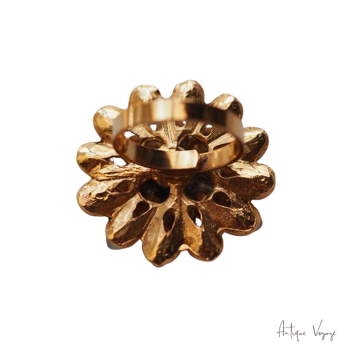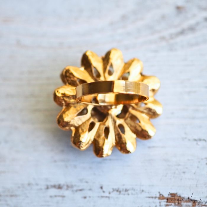 ラージサイズで贅沢に天然石をあしらった、存在感あふれるゴージャスなフラワーリングです。